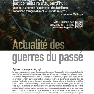 Report au 9 déc. Justice militaire d’hier,justice militaire d’aujourd’hui. Que nous apprend l’expérience des bataillons canadiens-français durant la Grande Guerre ? avec Alex Mailloux